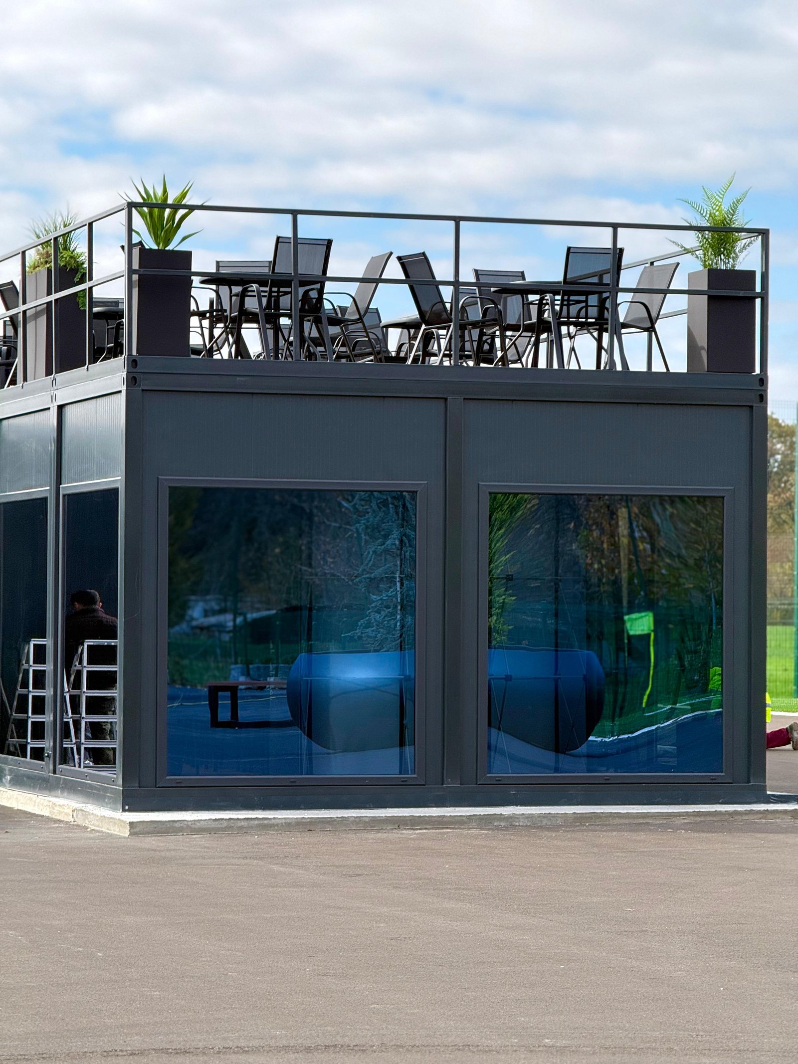 With its open construction, the terrace container creates a natural transition between indoor and outdoor environments. It is ideal for social areas, serving spaces, break zones, or entrance solutions, and can be adapted to both functional and aesthetic requirements. Thanks to its modular design, multiple units can easily be combined or expanded over time.